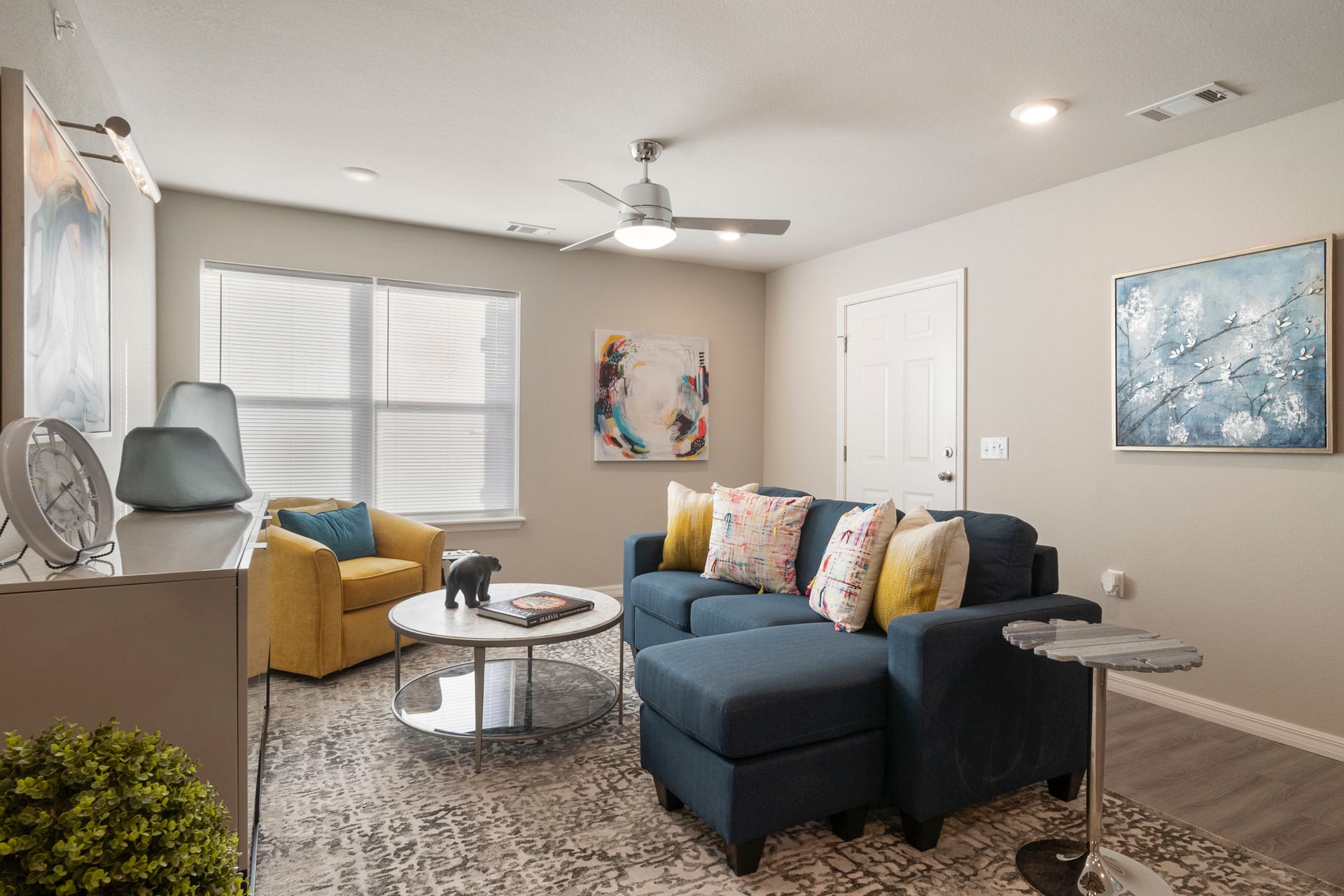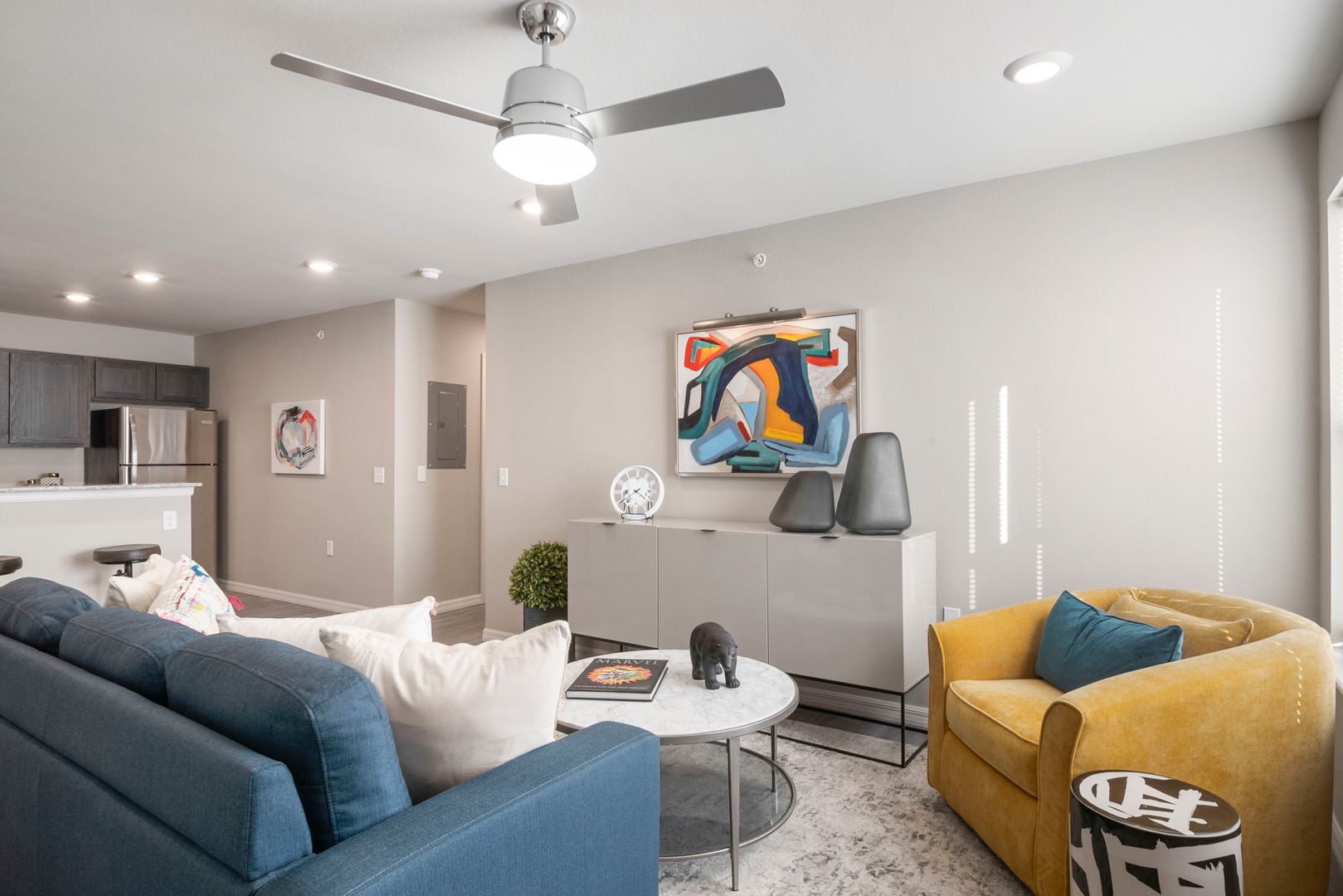 Our 1 bedroom features an open concept design with a modern bright color scheme which creates the feeling of additional square footage! Enjoy in-suite laundry and over sized windows for a luxury feel.